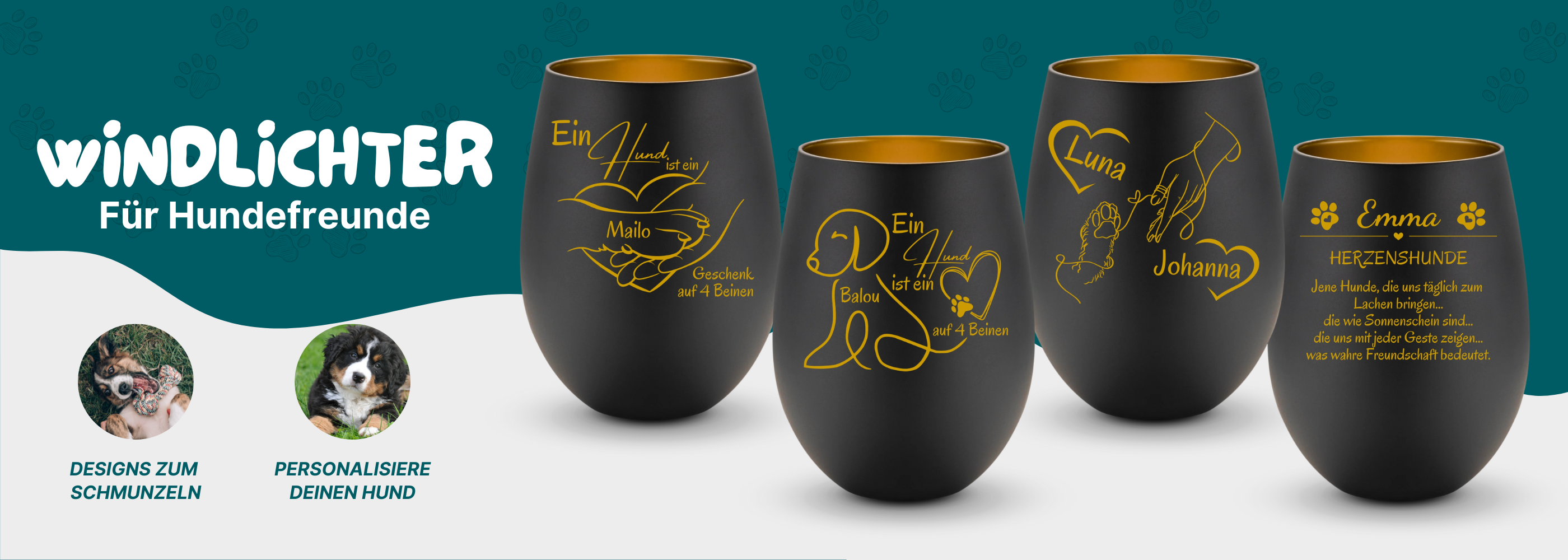 Herzenshunde - Windlicht personalisierbar
